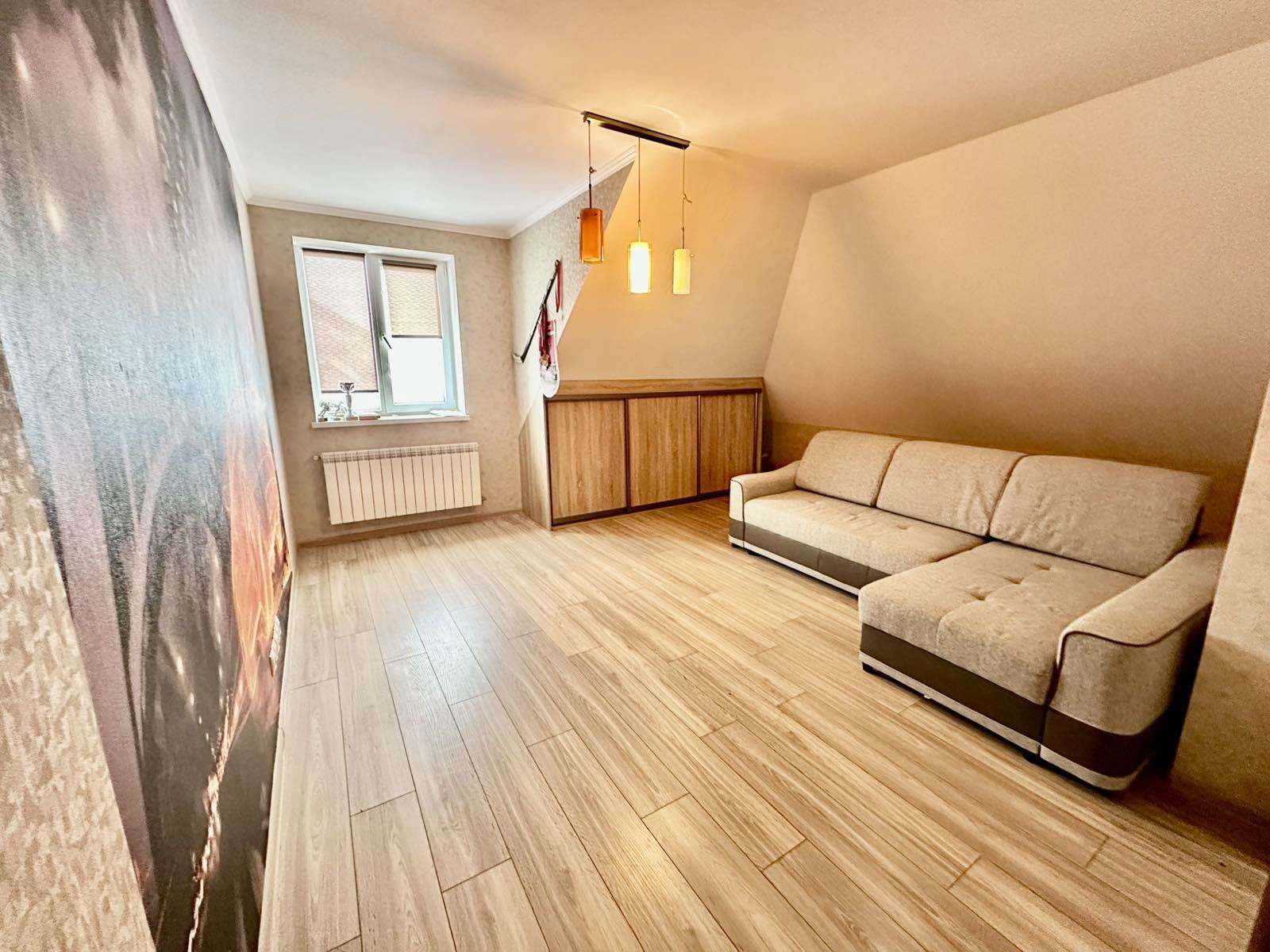 Продуманная и функциональная планировка: на 1-м этаже расположена кухня и гостиная c большими панорамными окнами, что обеспечивает полноту естественного освещения, в коридоре вместительный шкафа-купе, санузел и одна жилая комната, на втором этаже три комнаты и санузел.