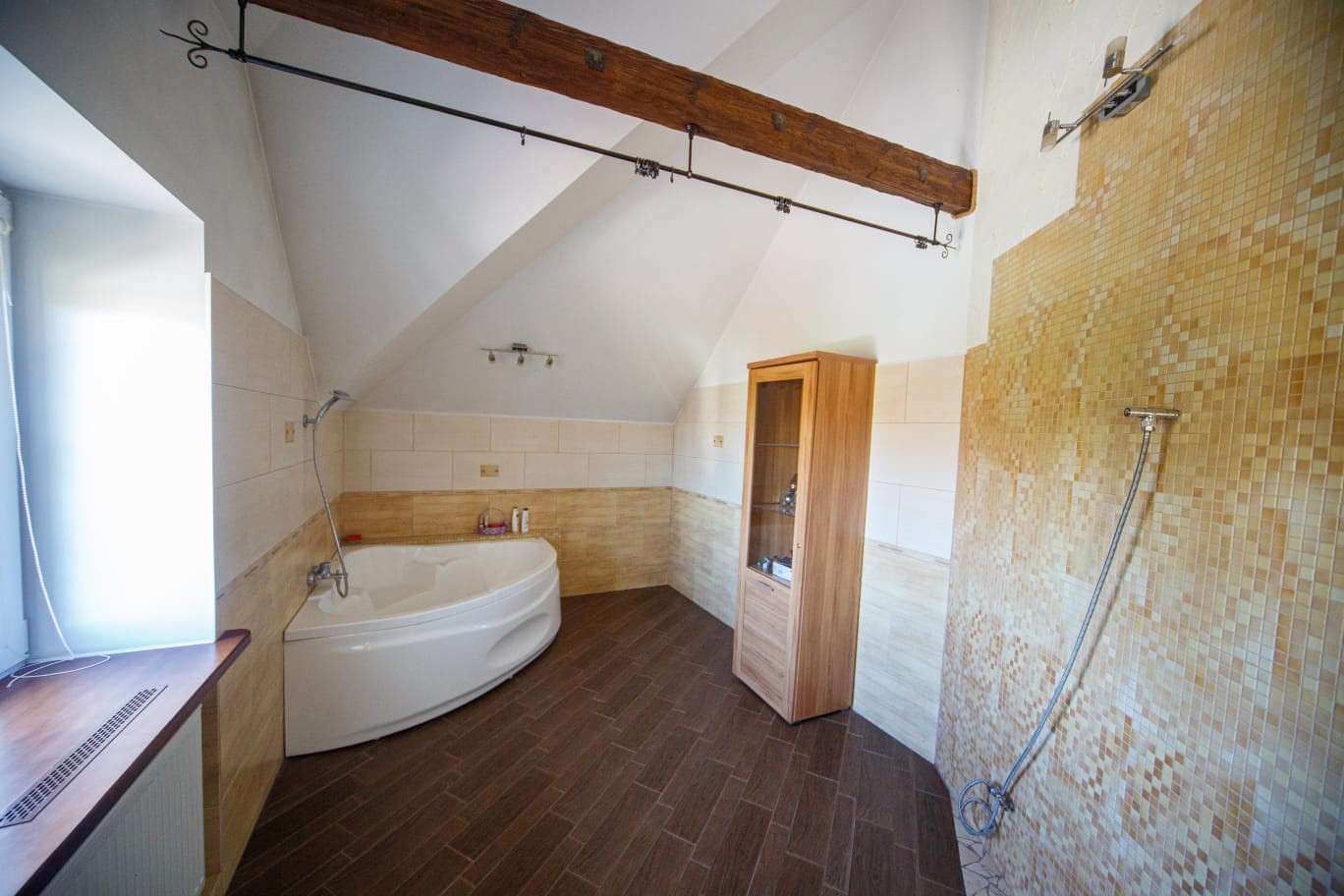 Дом выполнен из качественных материалов. Фундамент —бетон. Материал стен — кирпич. Перекрытия ж/б. Кровля черепица .Окна ПВХ стеклопакеты. Количество комнат – 5 гостиная с камином 47.8 м2, комнаты (26.9 м2/25.9 м2/24.0 м2/23.3 м2).Кухня 17.2 м2.Сан.узел 20.6 м2.