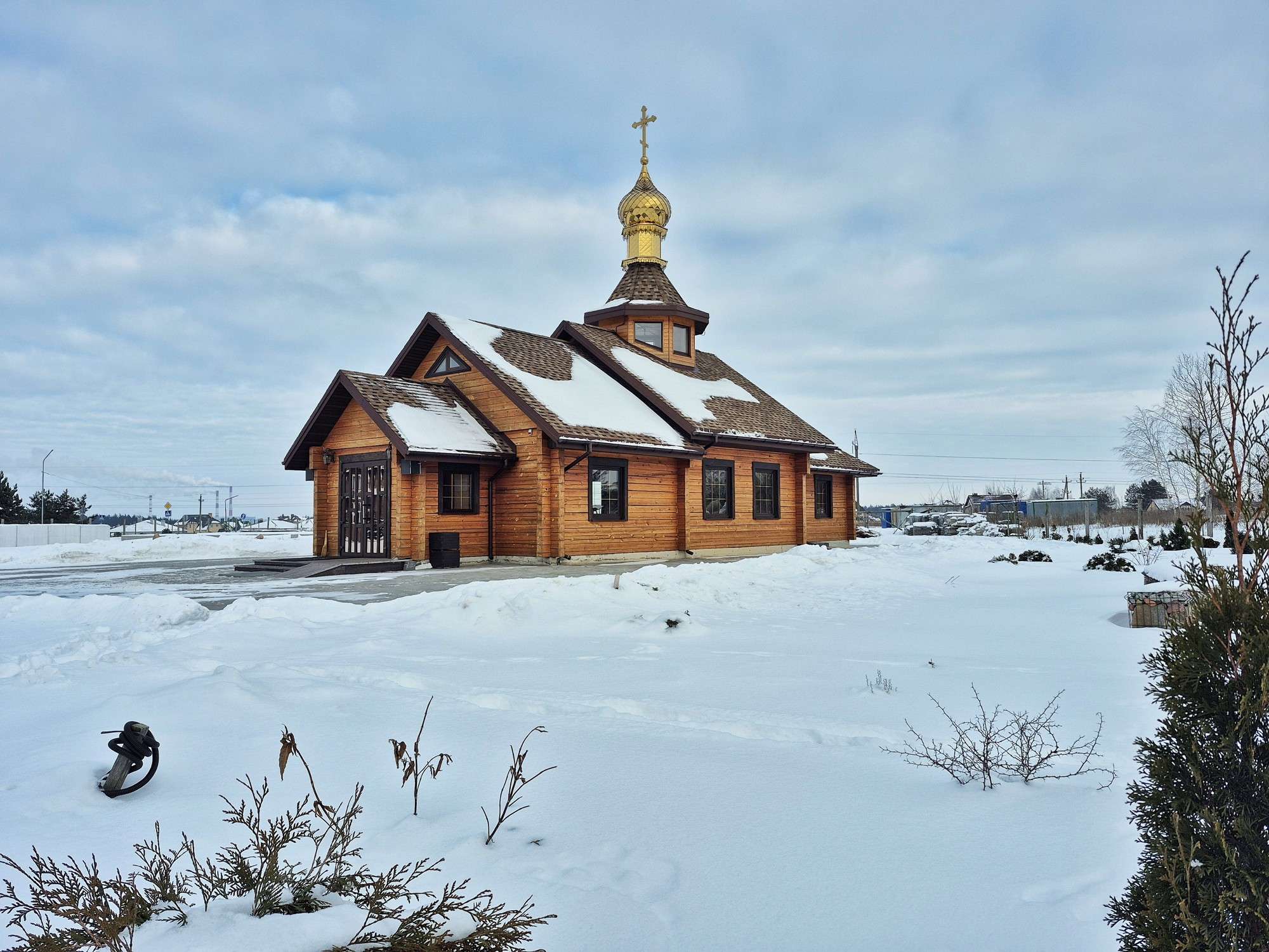 Рядом: магазин, церковь, остановка общественного транспорта.
