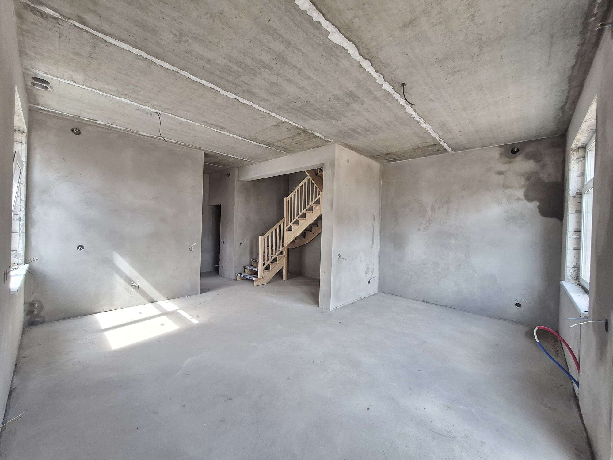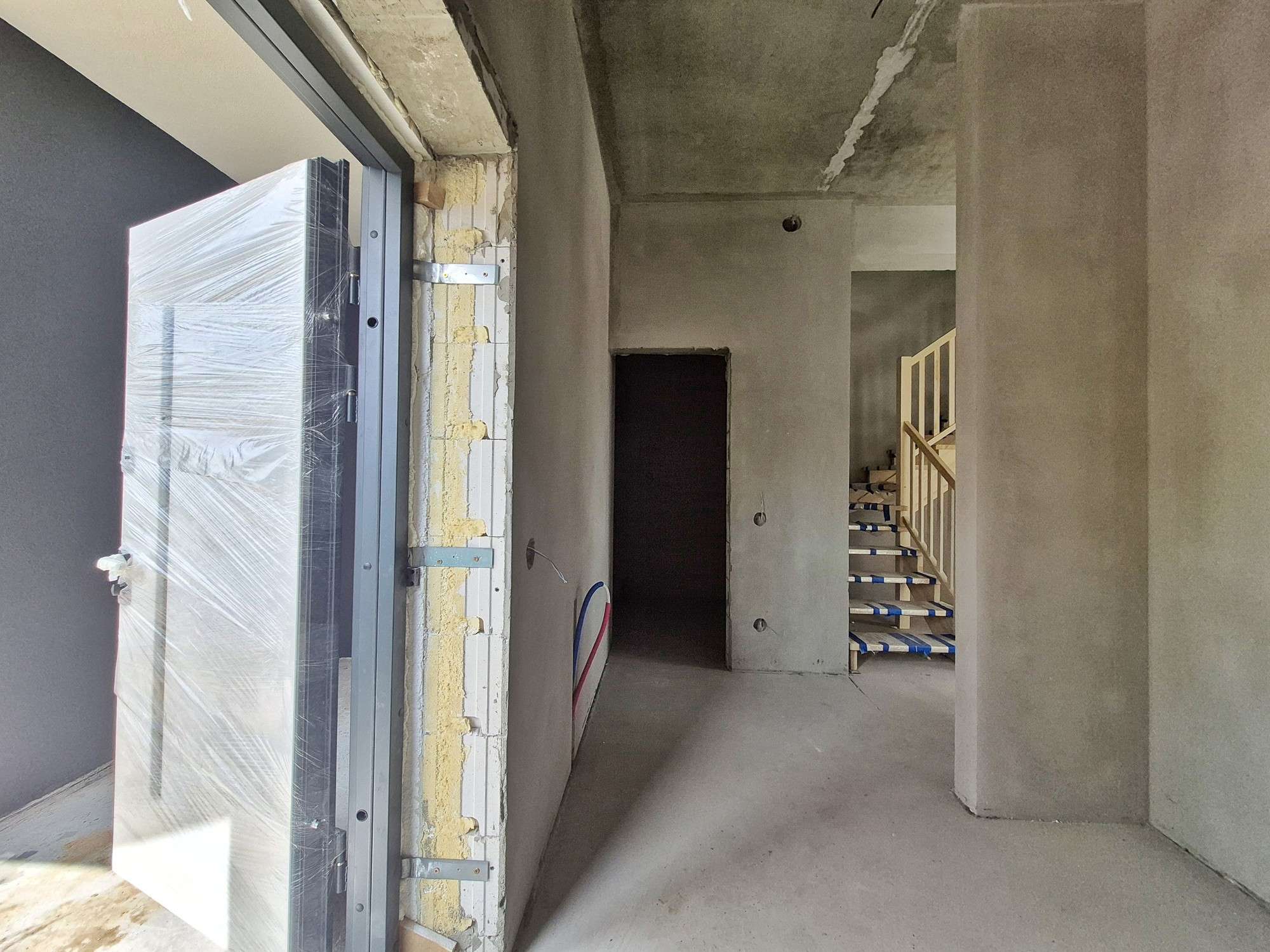 Коммуникации центральные: водоснабжение, газ, канализация. Проведено оптоволокно. Разведена электрика.